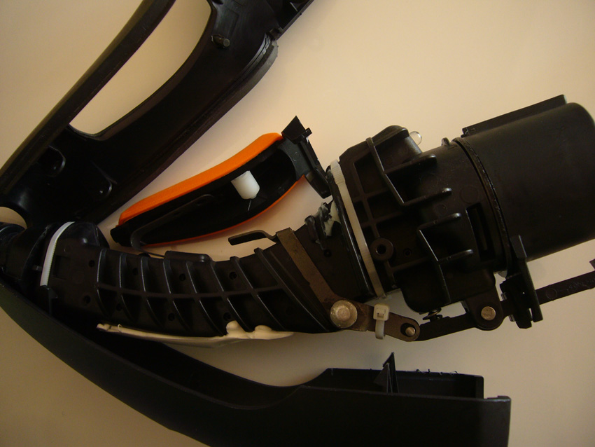 Den habe ich dann gleich generalüberholt, und alle beweglichen Teile mit ein wenig Lagerfett geschmiert. Ursache für die Blockade war die herausgesprungene weiße Nylonrolle (download/file.php?id=1001) im oberen Teil des T1' (im orang. Griff) die aus der Führung gesprungen war. Damit das künftig nicht mehr passiert, habe ich sie dagegen gesichert. (Danke für die div. Tipps hier im Forum).